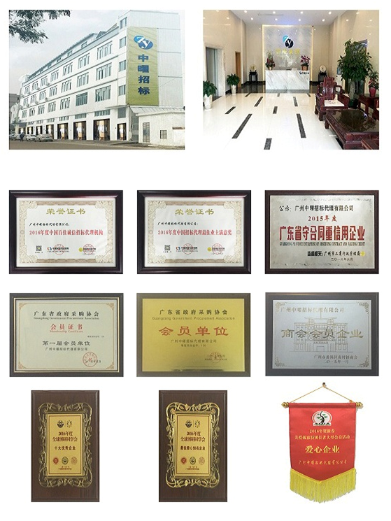 中曜招标是经广东省财政厅批准的从事货物、工程和服务招标采购、政府采购咨询服务的专业代理机构。拥有中华人民共和国政府采购代理机构资格证书、广东省财政厅和广州市财政局核准的政府采购网平台资格,为广东省政府采购协会第二届理事单位,广东省BOB亚博协会会员单位,并荣获“2017年度中国招标代理行业口碑奖”、“2016年度中国百佳诚信招标代理机构”及“2016年度中国招标代理最佳业主满意奖”等国家级重量奖项。